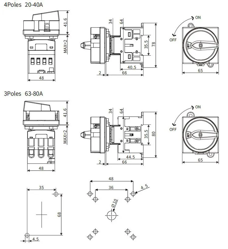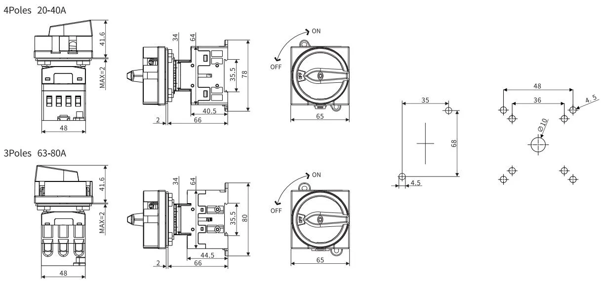Interruptor aislado de CA 4P Entrada: 80 A, manija negra |