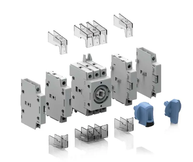 El interruptor de aislamiento adopta el mismo auxiliar contacto, y el contacto auxiliar y el El polo principal del interruptor actúa al mismo tiempo. Un contacto normalmente abierto con PR se desconecta La función se puede proporcionar según sea necesario. El interruptor de aislamiento se puede instalar con hasta cuatro accesorios auxiliares (Sobre 2 y 2 a la izquierda) | La cubierta del terminal del interruptor de aislamiento tiene una forma simple | Operación de contacto simultáneo o temprano | |||