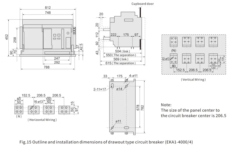 EKW1-2000/3P 400A F AC230V (circuito de control de voltaje fijo de 3 polos de 400 A (230 V), cableado horizontal predeterminado, voltaje nominal de 400 V, controlador tipo M, derivación de 230 V, mecanismo de operación eléctrico de 230 V, contactos estándar 6 NO 6 NC. Especifique de acuerdo con la tabla anterior si necesita otros accesorios.