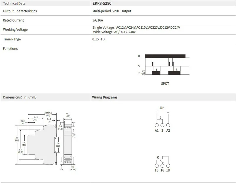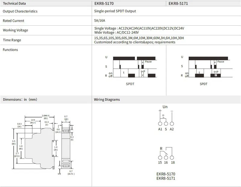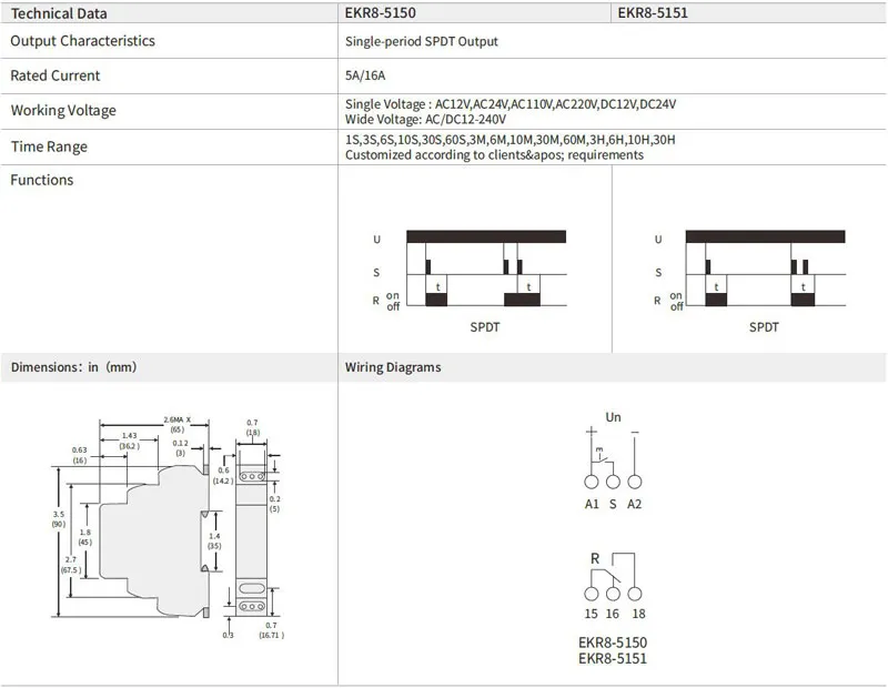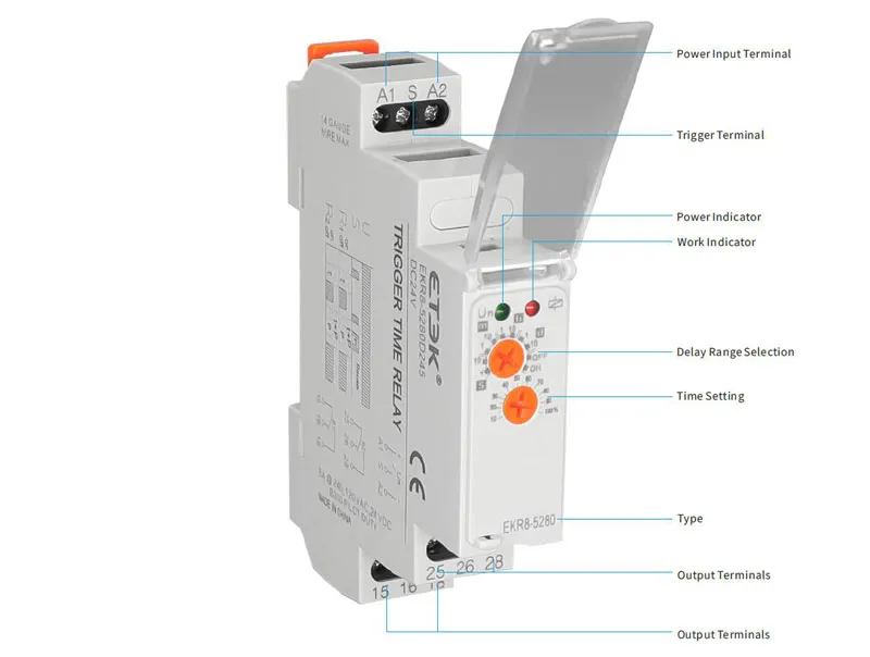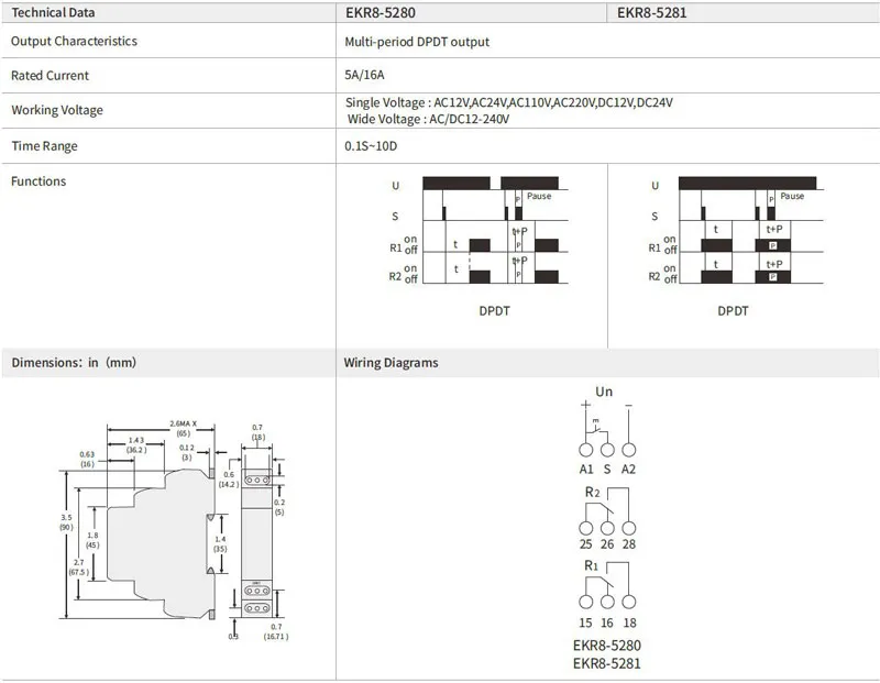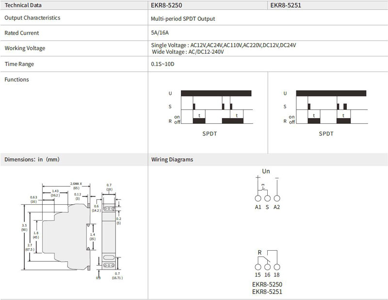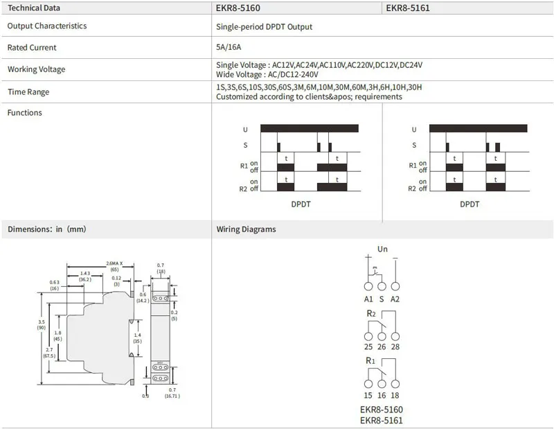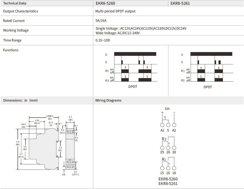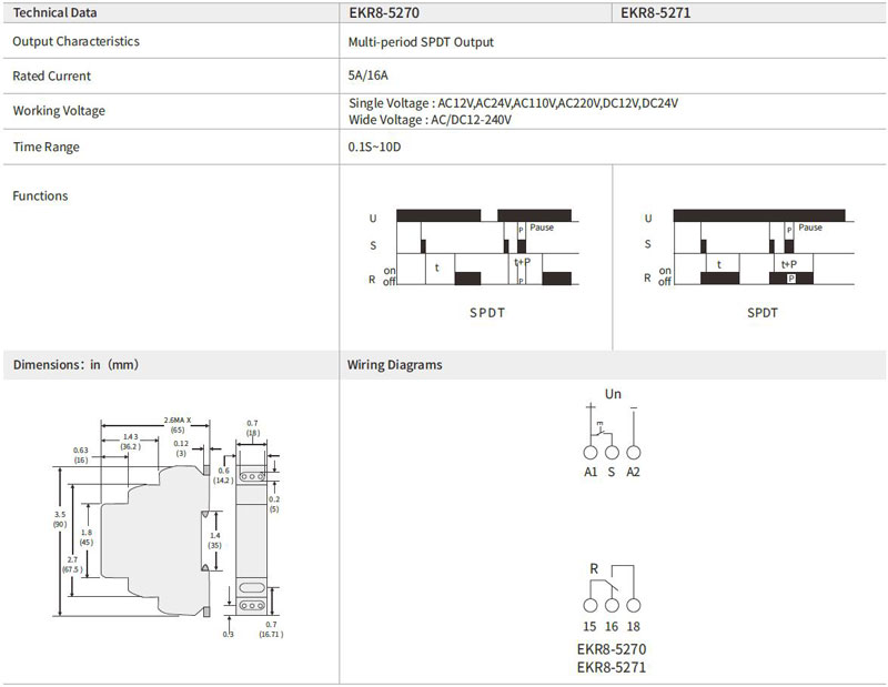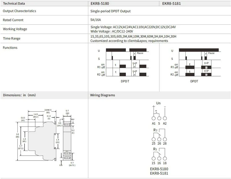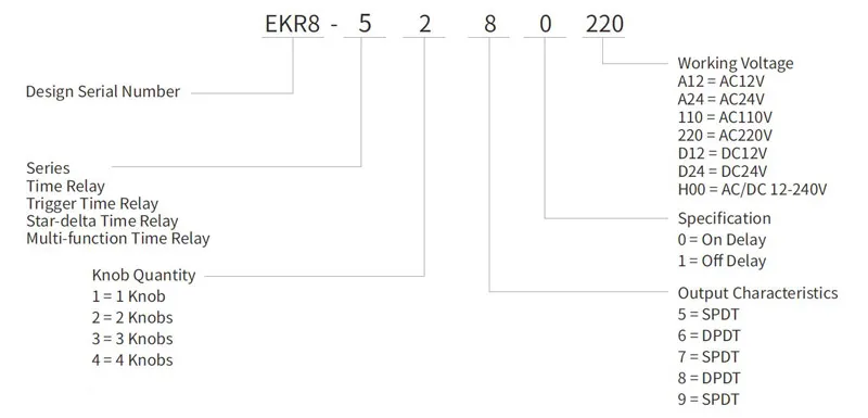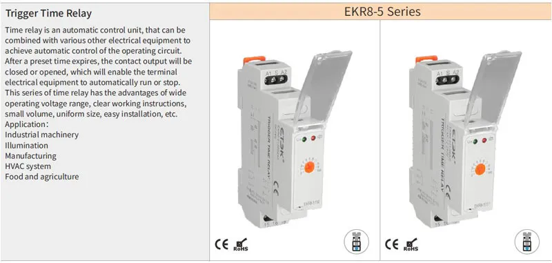 Relé de retardo SPDT/DPDT tipo riel DIN serie EKR8-5