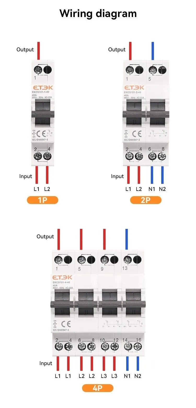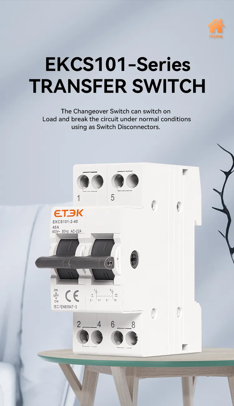 El interruptor de aislamiento de conversión de potencia dual montado en riel EKCS101 tiene cuatro funciones de encendido, apagado, conversión y aislamiento. Se puede encender y apagar libremente entre dos cargas transportadas por un grupo de líneas o en dos fuentes de energía. Se utiliza para encender y apagar y conmutar entre, utilizando la instalación en riel estándar DIN (35 × 7,5), la carcasa está hecha de moldeo por inyección PA66, con un alto rendimiento ignífugo, es un producto ideal que debe usarse para conmutar y abrir y cerrar en equipos y circuitos industriales. La corriente máxima puede alcanzar los 40 A, y es conveniente y seguro de instalar y cablear en el riel guía.