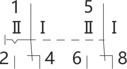 2.Cuando el mango toca la posición II: 1,5 y 4,8 están conectados.