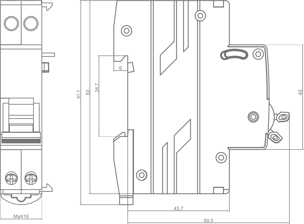 3. Para montar en el lado izquierdo de los MCB/RCBO gracias al pasador especial.