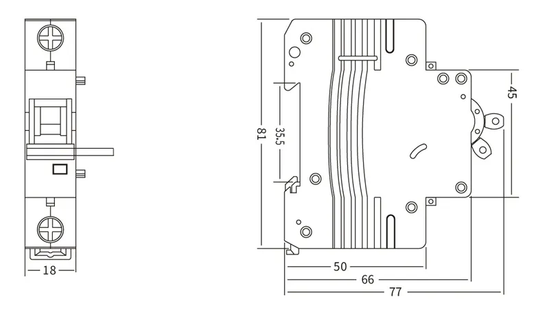 | Montado en el lado derecho del disyuntor, activa el dispositivo combinado para que se dispare en caso de subtensión o sobretensión, evitando de manera efectiva que el dispositivo cierre la operación en condiciones de voltaje de energía anormal. | |
