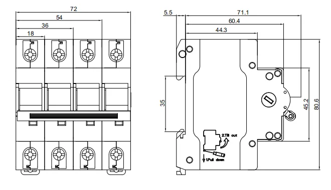 ● Tensión nominal: 230/240 V~ para 1P, 400/415 V~ para 2, 3, 4P