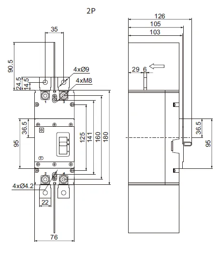 | Modo de cableado | Entrada ascendente y salida descendente, entrada descendente y salida ascendente (2P, 320/3P) Entrada descendente y salida descendente, entrada ascendente y salida ascendente (3P) | ||||||||