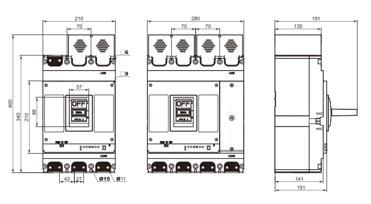 | EKM7DC-400 | 148 | 110 | 49 | 605 | 365 | 319 | 76 | 119 | 45 | 178 | 154 | 150 | 8 | 13 | 19 |