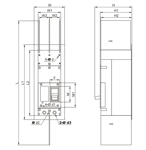 | Modelo | W. | W1 | W2 | l | L1 | L2 | METRO | M1 | F | h | H1 | H2 | d1 | d2 | d3 |