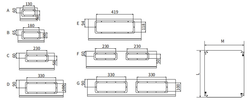 Modelo NO. | Tamaño (mm) | Espesor (mm) | Tamaño del orificio inferior | Cantidad de bloqueo | Tamaño de la placa de montaje (mm) | ||||||
