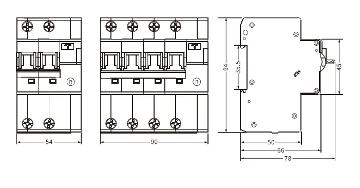 ● Número de polos: 2P(1P+N), 4P(3P+N)