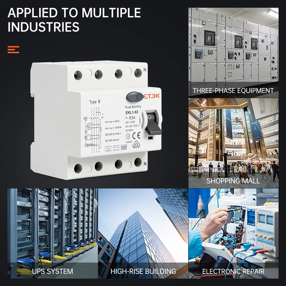 El interruptor diferencial tipo B EKL1-63B representa el compromiso de ETEK Electric de abordar las necesidades cambiantes de los sistemas eléctricos modernos. A medida que el uso de equipos que producen corriente continua y dispositivos de alta frecuencia se vuelve más frecuente, la necesidad de una protección integral contra varios tipos de corrientes residuales nunca ha sido más crítica. Este interruptor diferencial satisface esa necesidad al proporcionar un nivel de protección que los interruptores diferenciales estándar no pueden igualar.