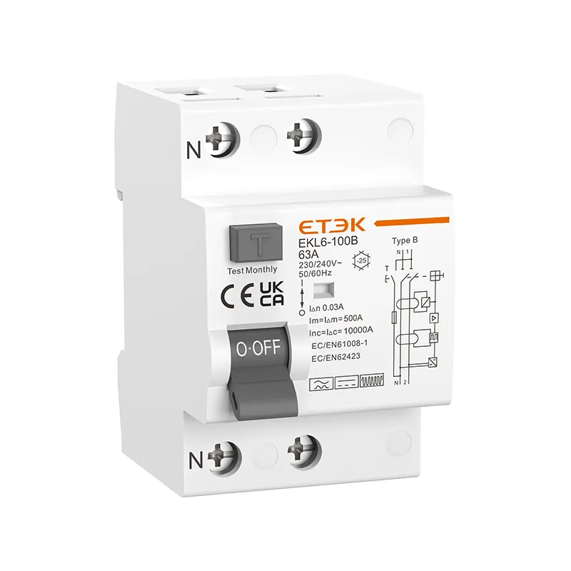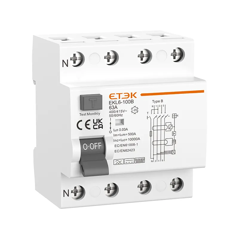 El interruptor diferencial tipo B EKL6-100B es un dispositivo de corriente residual de última generación diseñado para satisfacer las cambiantes demandas de seguridad de las instalaciones eléctricas modernas. Con su capacidad de 100 A y su capacidad para detectar una amplia gama de corrientes de fuga, este interruptor diferencial robusto es perfectamente adecuado para aplicaciones de alta potencia en entornos industriales, sistemas de energía renovable e infraestructura de carga de vehículos eléctricos. El EKL6-100B garantiza una mayor seguridad y confiabilidad, protegiendo tanto al personal como al equipo de los riesgos asociados con las fugas eléctricas.