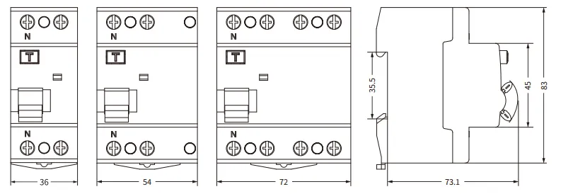 2P(1P+N), 4P(3P+N), polo N a la izquierda