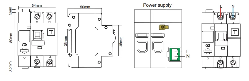 | Terminal de suministro | LN (Es recomendable tomar energía de la línea entrante) | ||