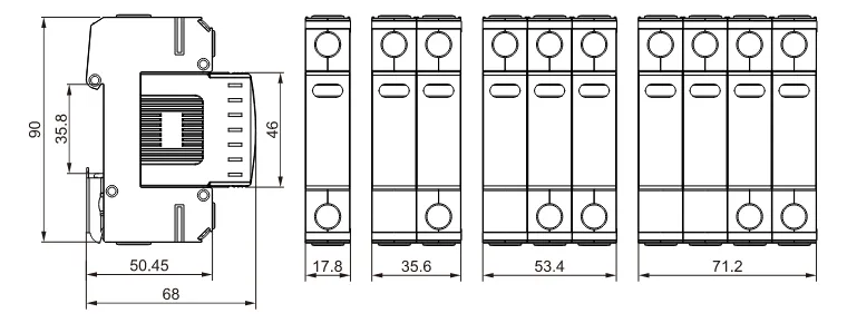 | Nivel de protección de tensión (LN)/(N-PE) | Arriba | 1,2 kV/1,5 kV | 1,4 kV/1,5 kV | 1,6 kV/1,5 kV | 1,8 kV/1,5 kV | 2,0 kV/1,5 kV |